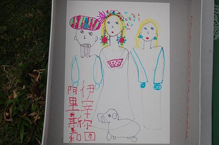 7岁孩童的理解力真是让人吃惊。娃娃的才智还是从小培养挖掘的好。 画名是自己设计成大小字的?称赞一下。