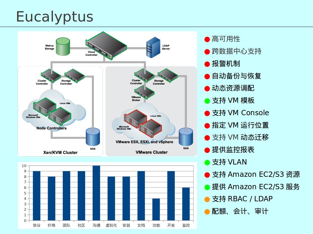 想请教下,Eucalyptus以及OpenStack等那么多功能都不支持,为什么还这么多地方用呢 这个功能的前提是什么呢?如果通过openstack管理vmware或者别的,esx本身就带动态迁移、高可用的功能,就都没有效果了吗?非常感谢。看了你这个几个比较太全面了,非常感谢!
