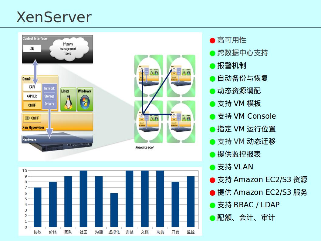 1)OpenStack的发展势头最好,应重点关注。 2)xcp没有license限制