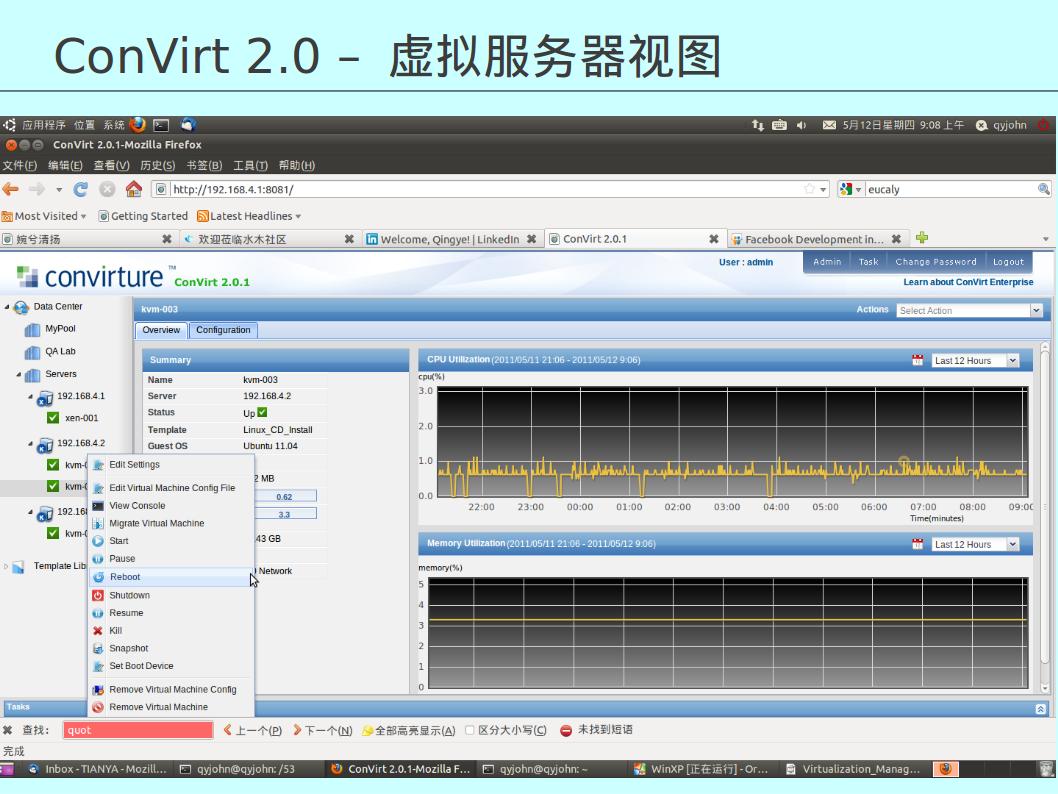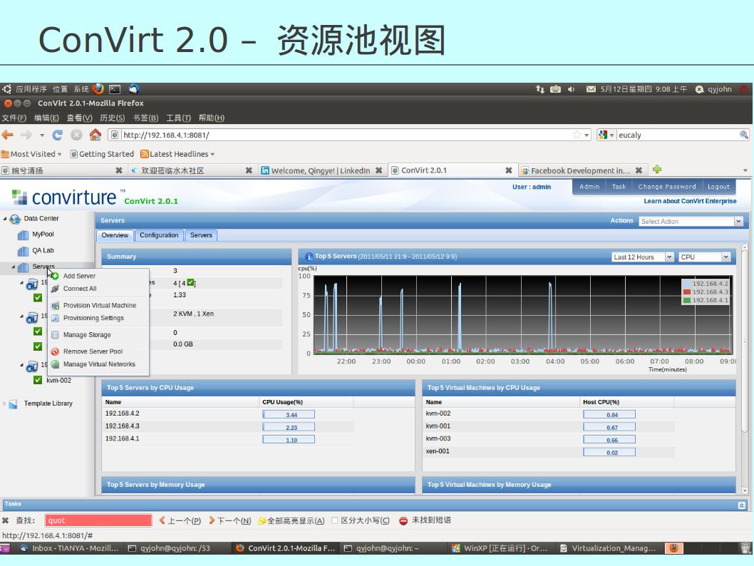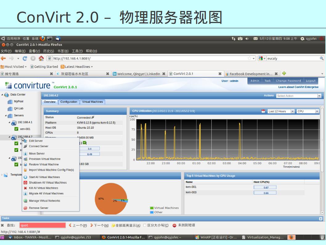 在我做这一系列测试的时候,CloudStack的功能虽然很多,但是在精细程度和可用性方面不如ConVirt。