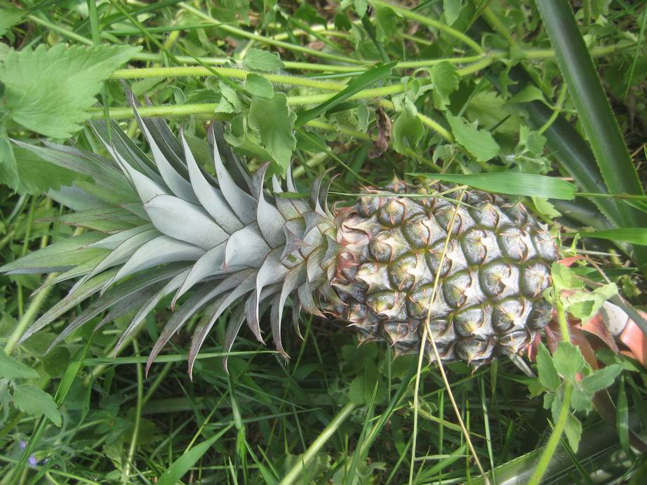 香水菠萝。2009年种下的苗,2010年第一次结果,之后每年夏天都结果。以前我还以为菠萝是一年生植物呢,原来是多年生的。