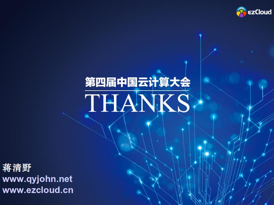由于我的讲座安排在上午的最后一个时段,估计在场的听众都等着去吃饭。分配给我的时间是40分钟,但是要讲完如上内容我估计需要46分钟,超时6 分钟。因此,在现场我会砍掉【IaaS技术】、【资源超售】和【Web应用桌面化】的部分已经广为人知的内容,【ezCloud演示】部分必须控制在5 分钟以内。最终要保证这个讲座绝对不超时,最好能够提前两分钟结束。