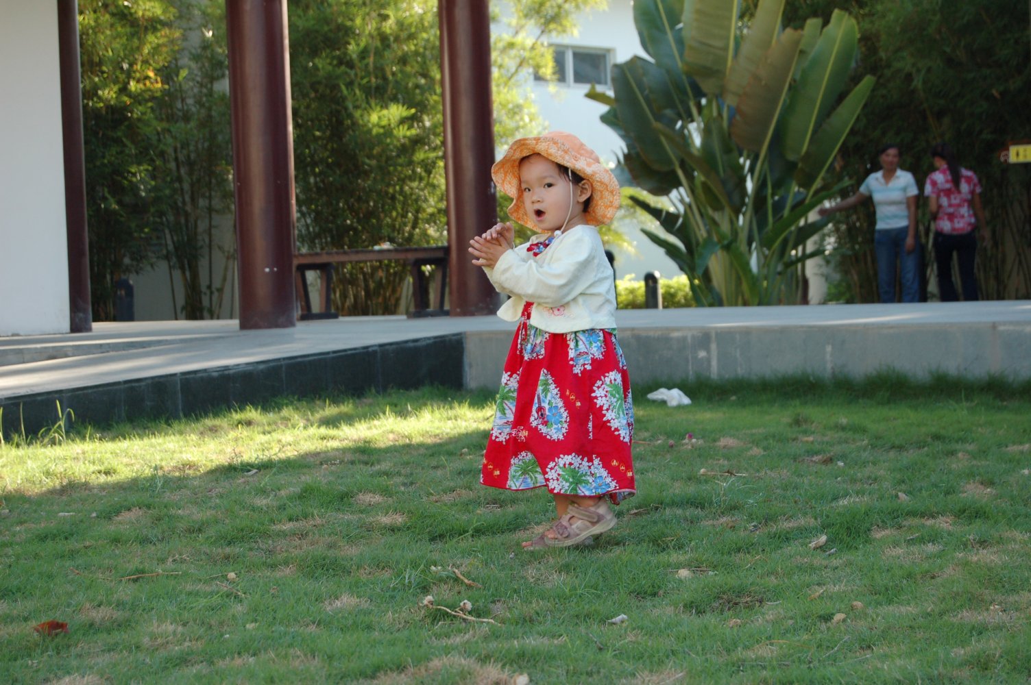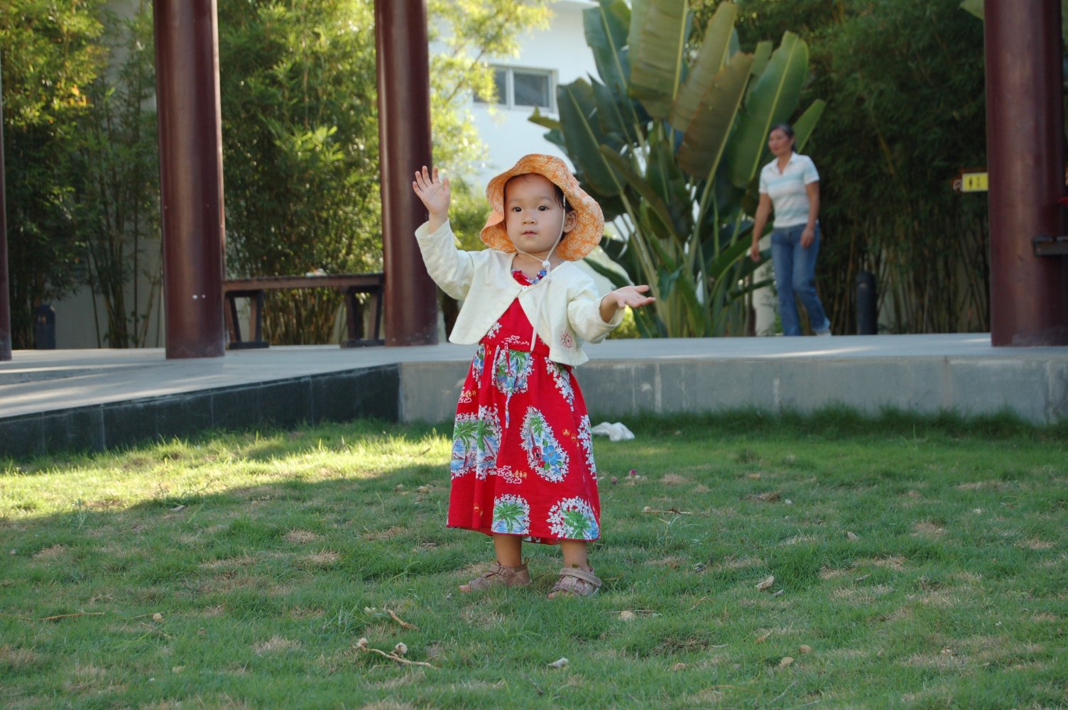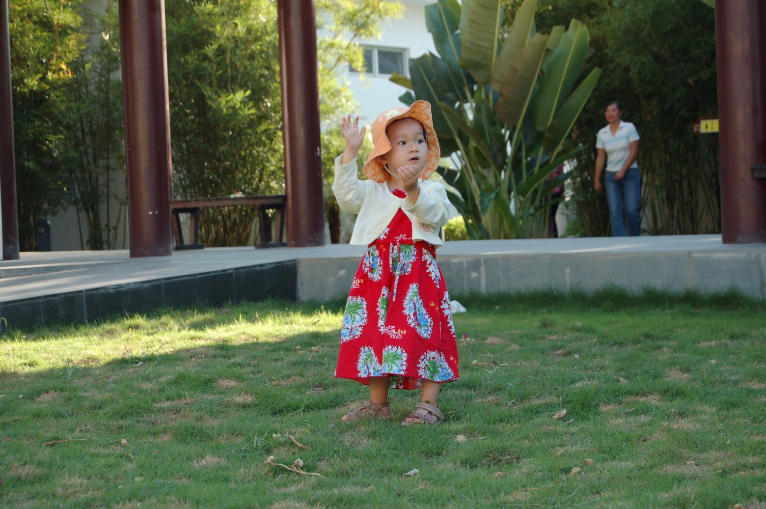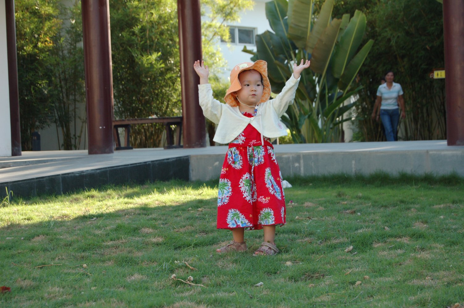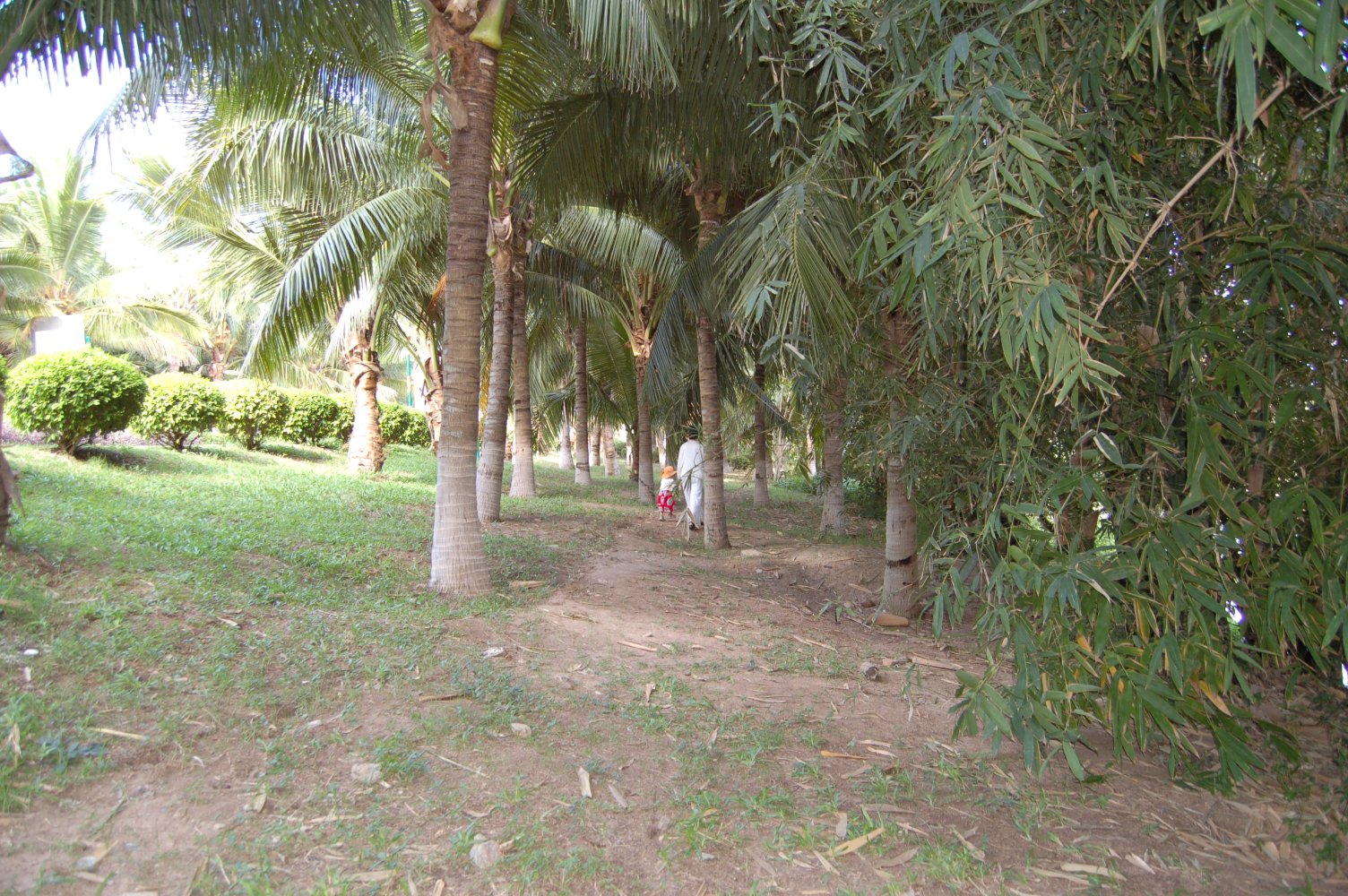 和妈妈手拉手漫步在这阴凉的椰子树底下,静静地听虫子们躲在草丛里面唱歌。妈妈,我真