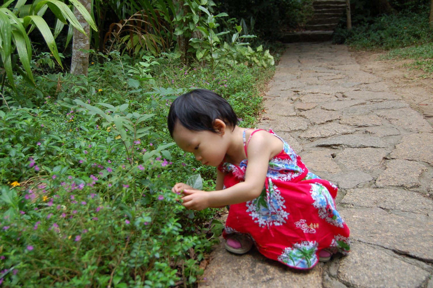 爸爸你看,这些小花好漂亮啊。