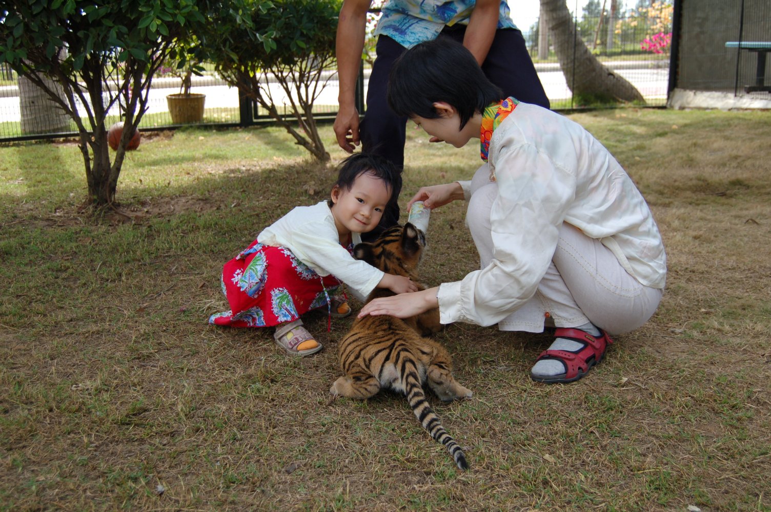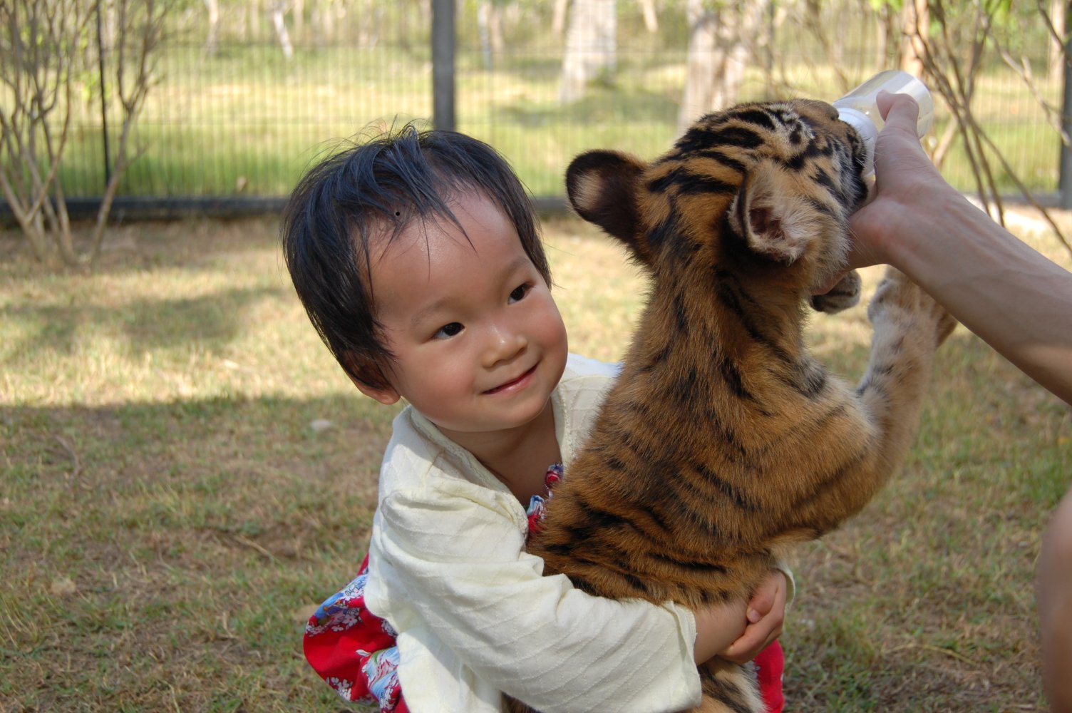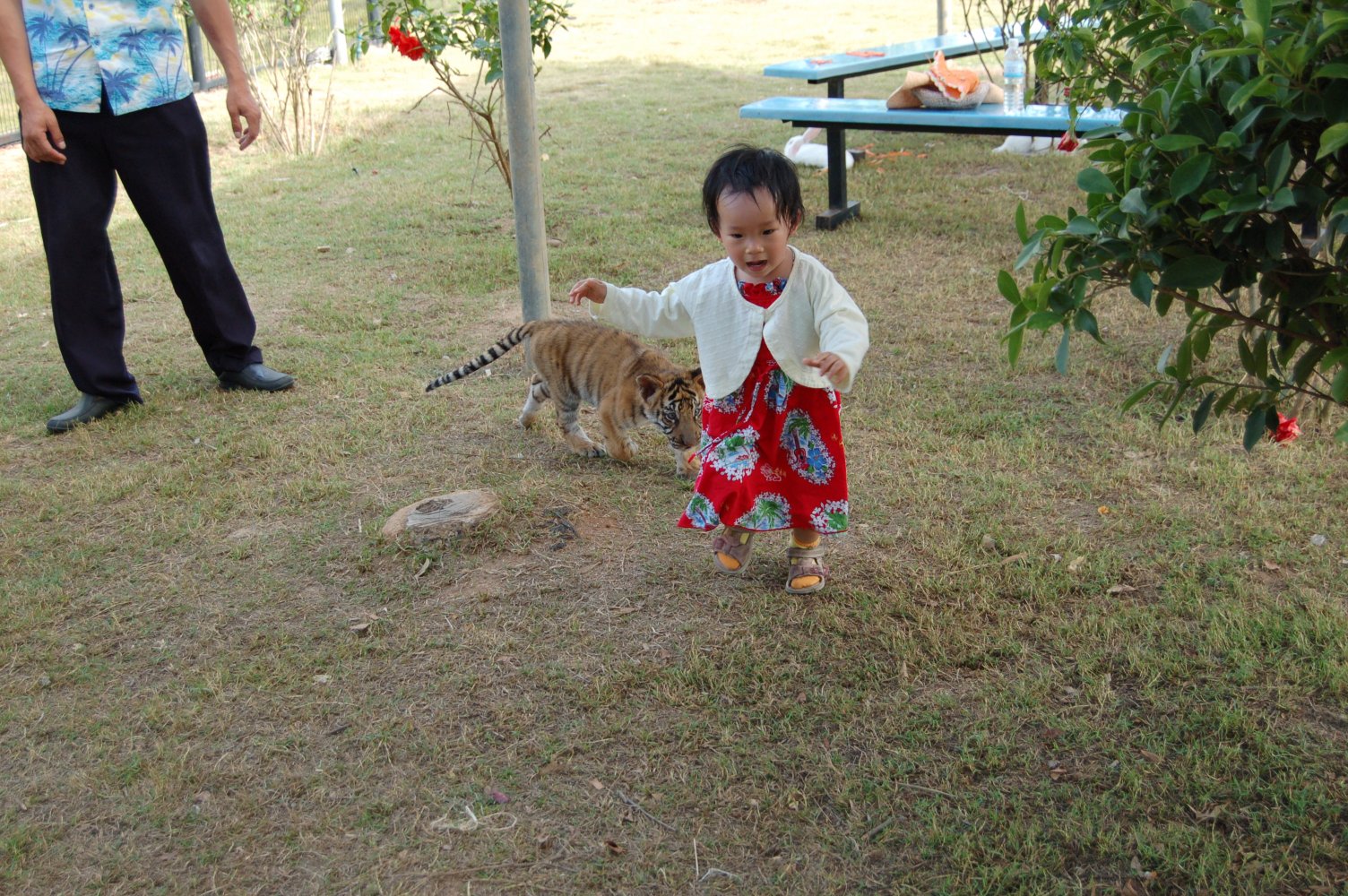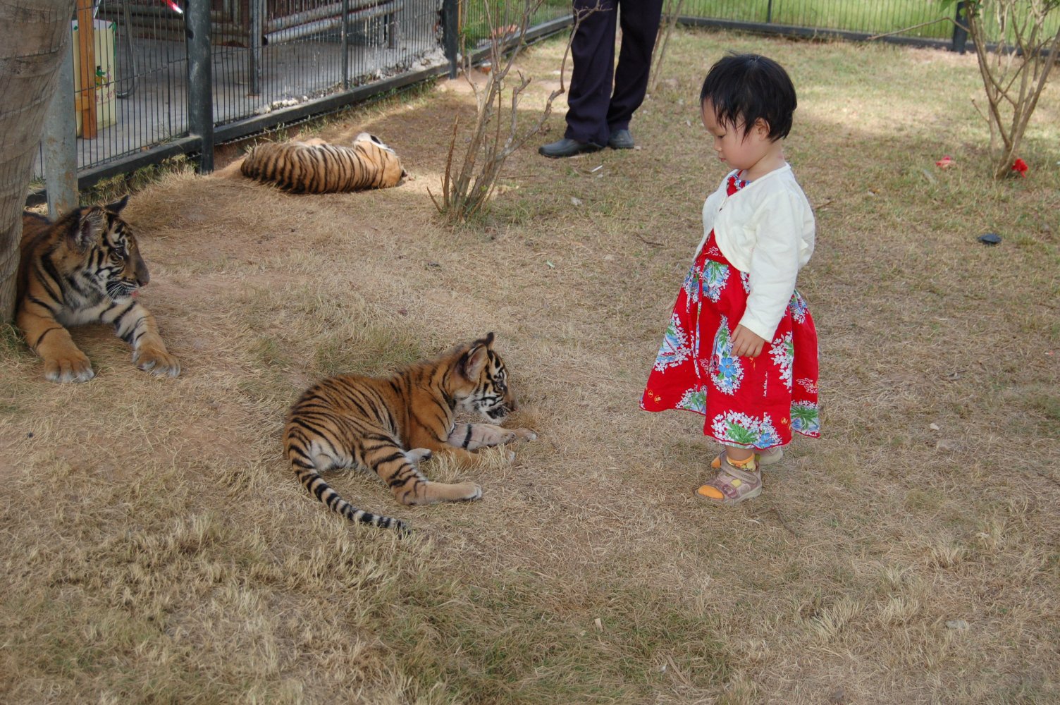 我们家的小人,刚好有钱(老爸的)和胆量(她自己的)去跟小老虎玩耍。于是我