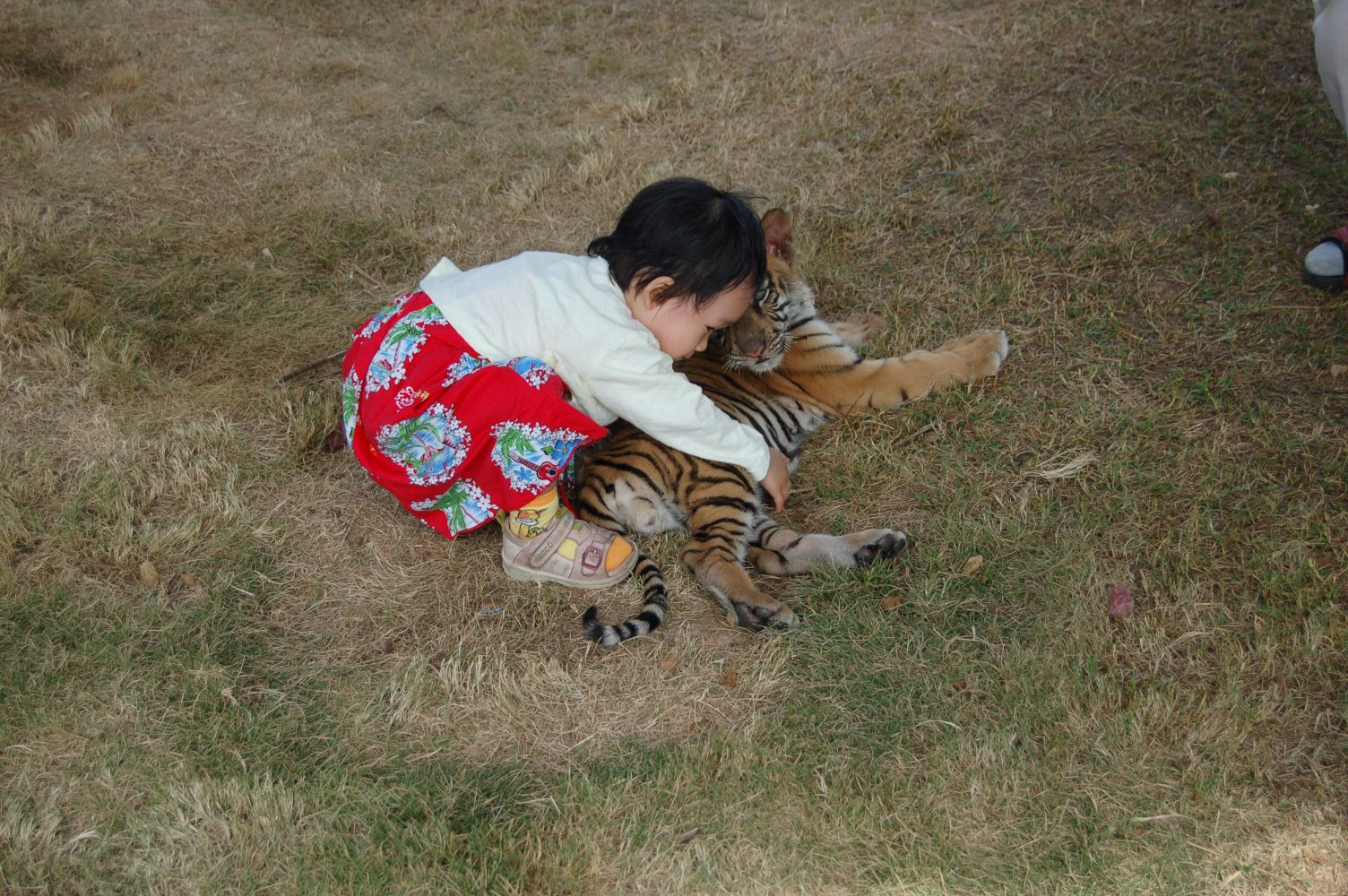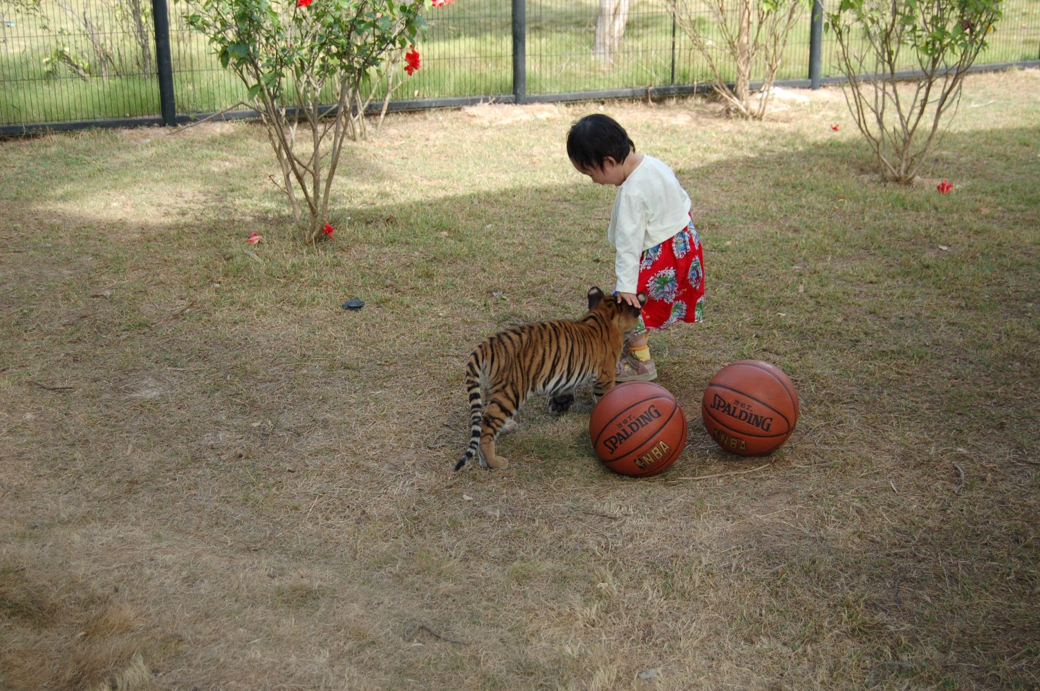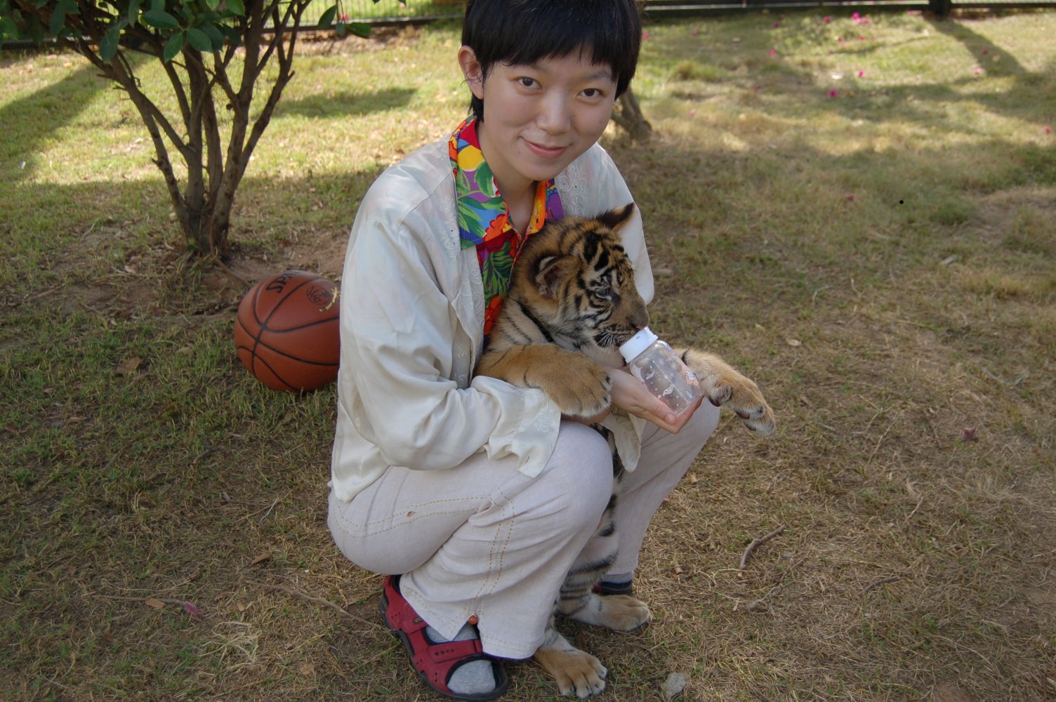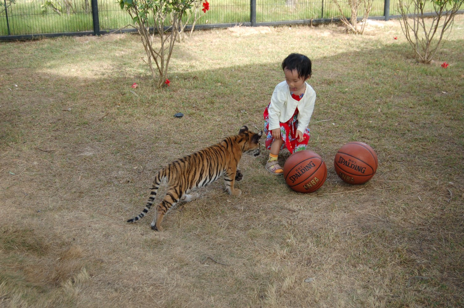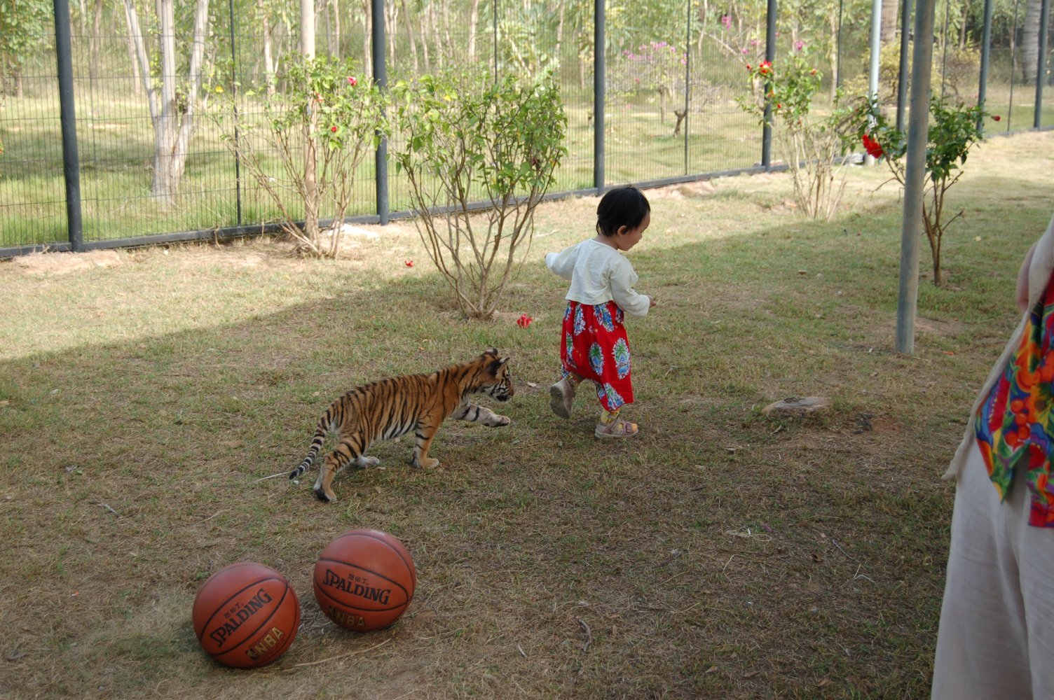 我们家的小人,刚好有钱(老爸的)和胆量(她自己的)去跟小老虎玩耍。于是我