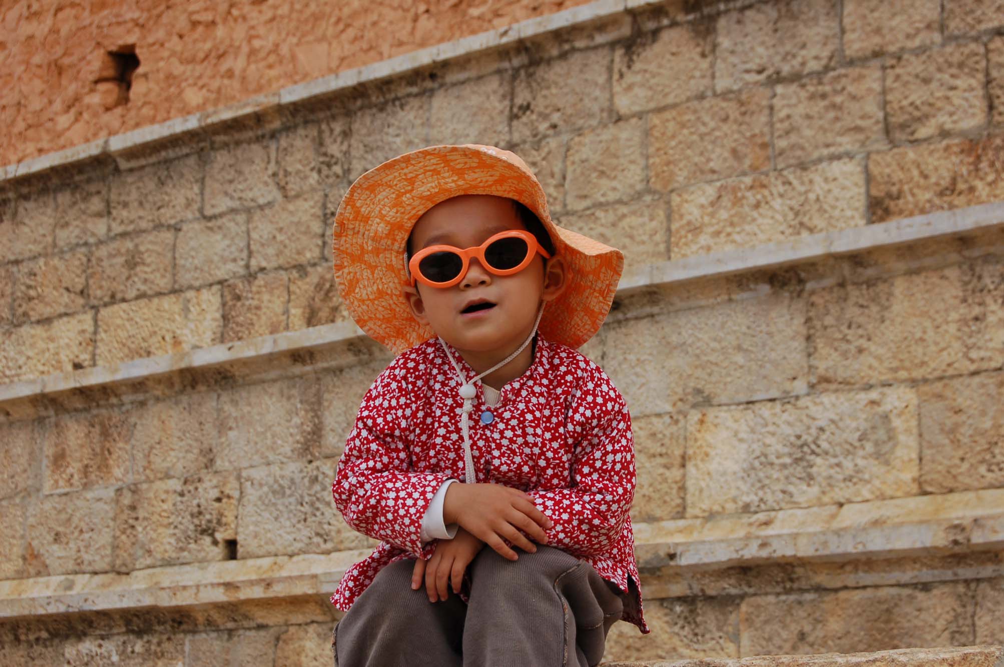 我们家酷酷的清扬婉兮,戴着小墨镜坐在某康仓的台阶上休息。