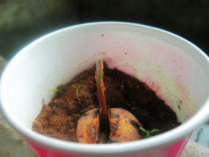 去年11月用买来的鳄梨取出种子自己培育种苗。经过80天的砂床培育,终于有两个小小的芽头破土而出。地里那棵,个头比较大,是东南亚的品种。当时埋下了六颗种子,只冒出来一个芽头。杯里那棵,个头比较小,是南美洲的品种。当时埋下了四颗种子,也只冒出来一个芽头。