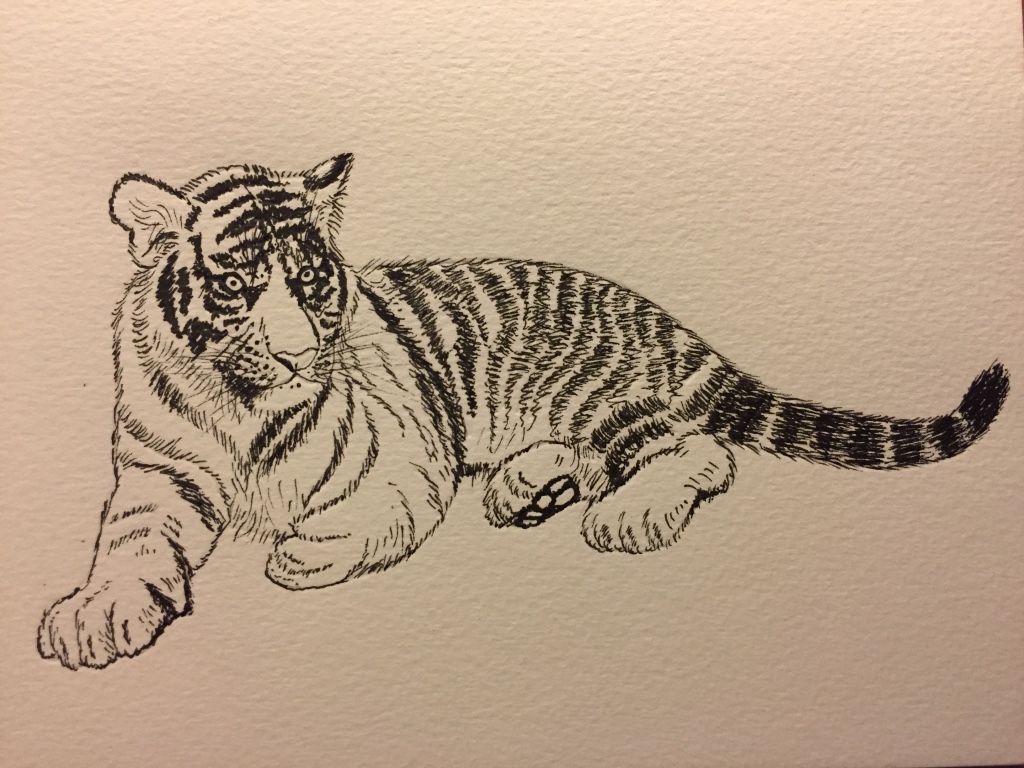 老虎画得很不错!你还在读博吗?两个女儿都多大了?