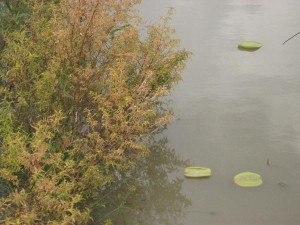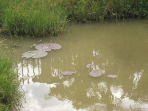 一个星期前,在门口的鱼塘里埋下了一些藕种。才过5 天,小小的荷叶就浮到水面上来了。